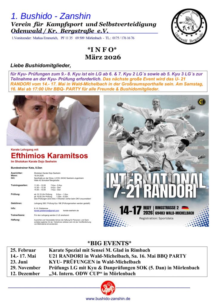 Liebe Bushido-Mitglieder, anbei die Infomeldung für November 2025 euer Bushido-Team